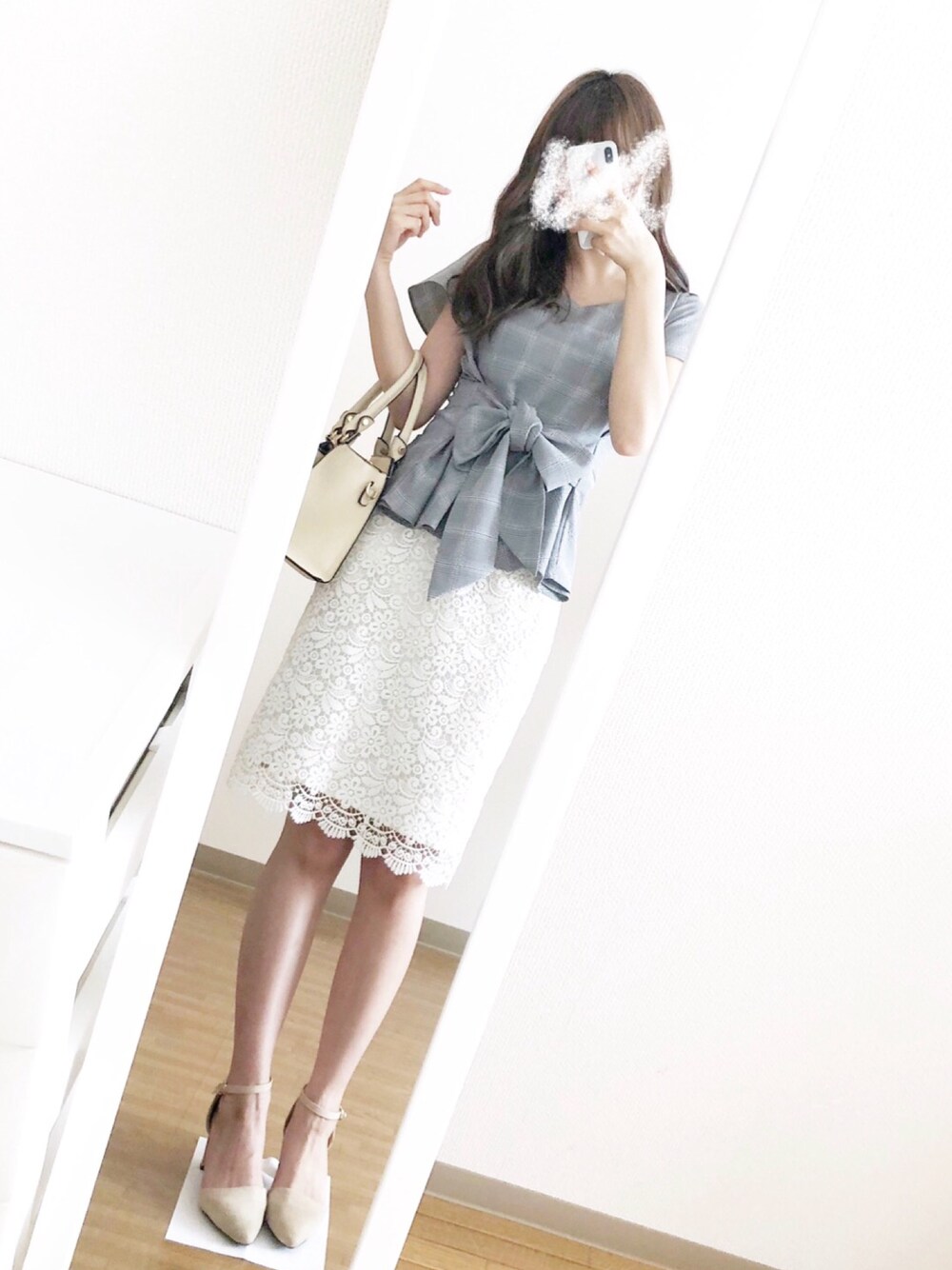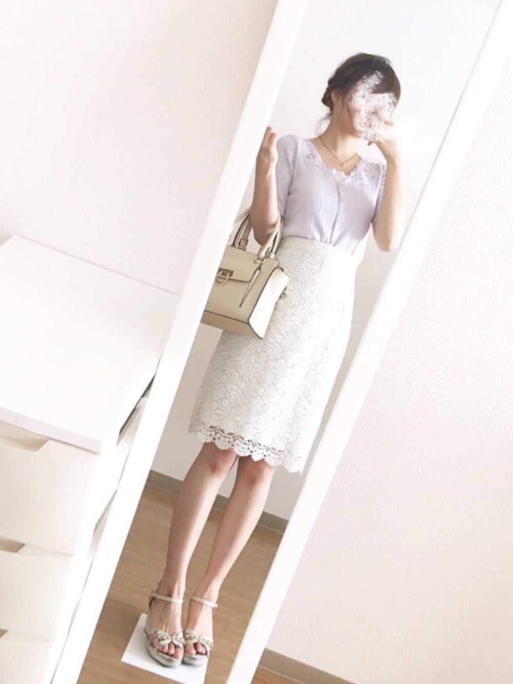 白いスカートに淡い色のブラウスを合わせると、とても女性らしく可愛らしくなりますね!
